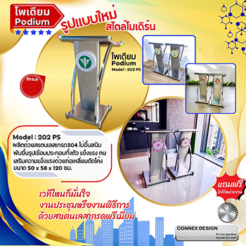 - TOP ด้านบนของโพเดียมทำด้วยสแตนเลสเกรด 304 พับขึ้นรูป